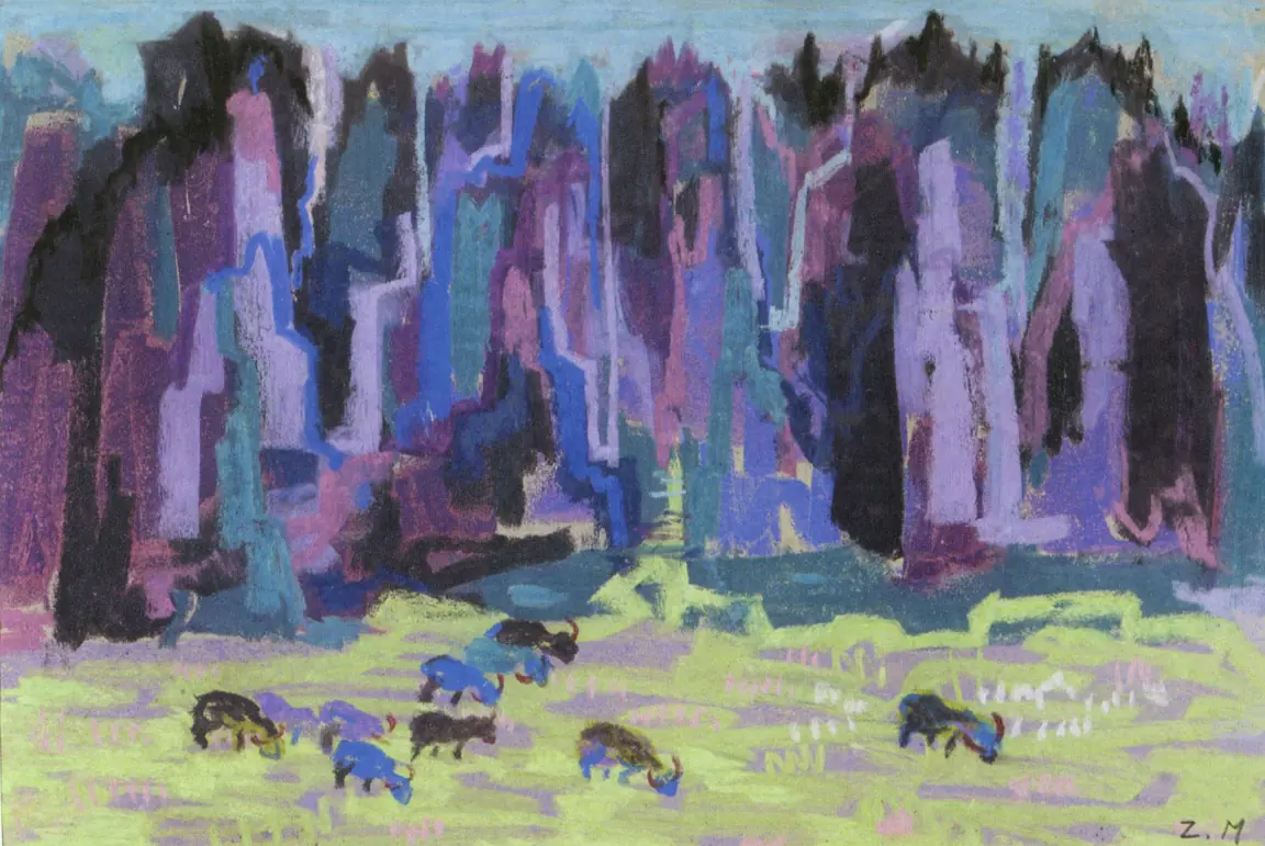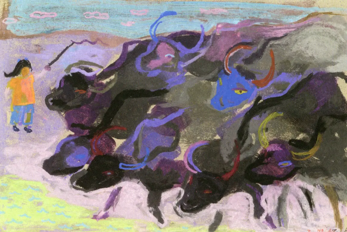 Βουβάλια, περ. 1957-62, παστέλ σε χαρτί, 24 x 34,5 εκ., ιδιωτική συλλογήΧωριό Ι