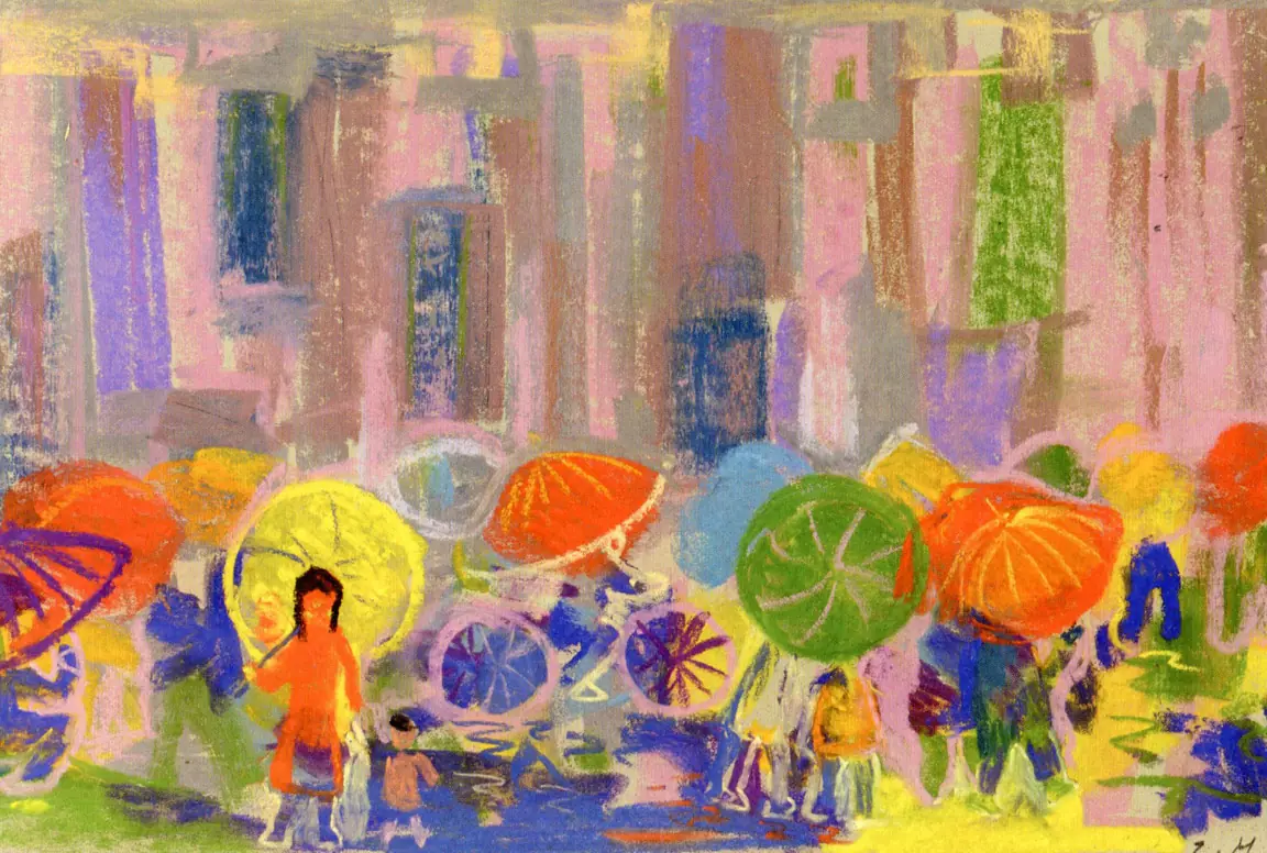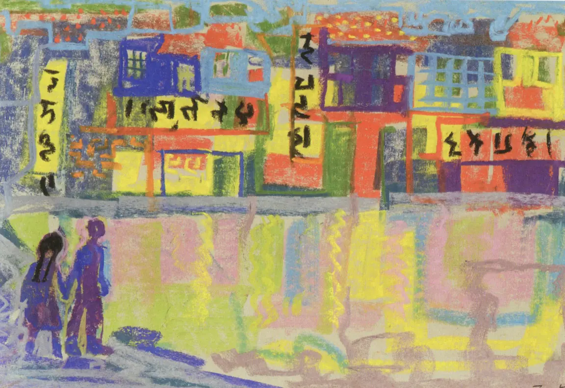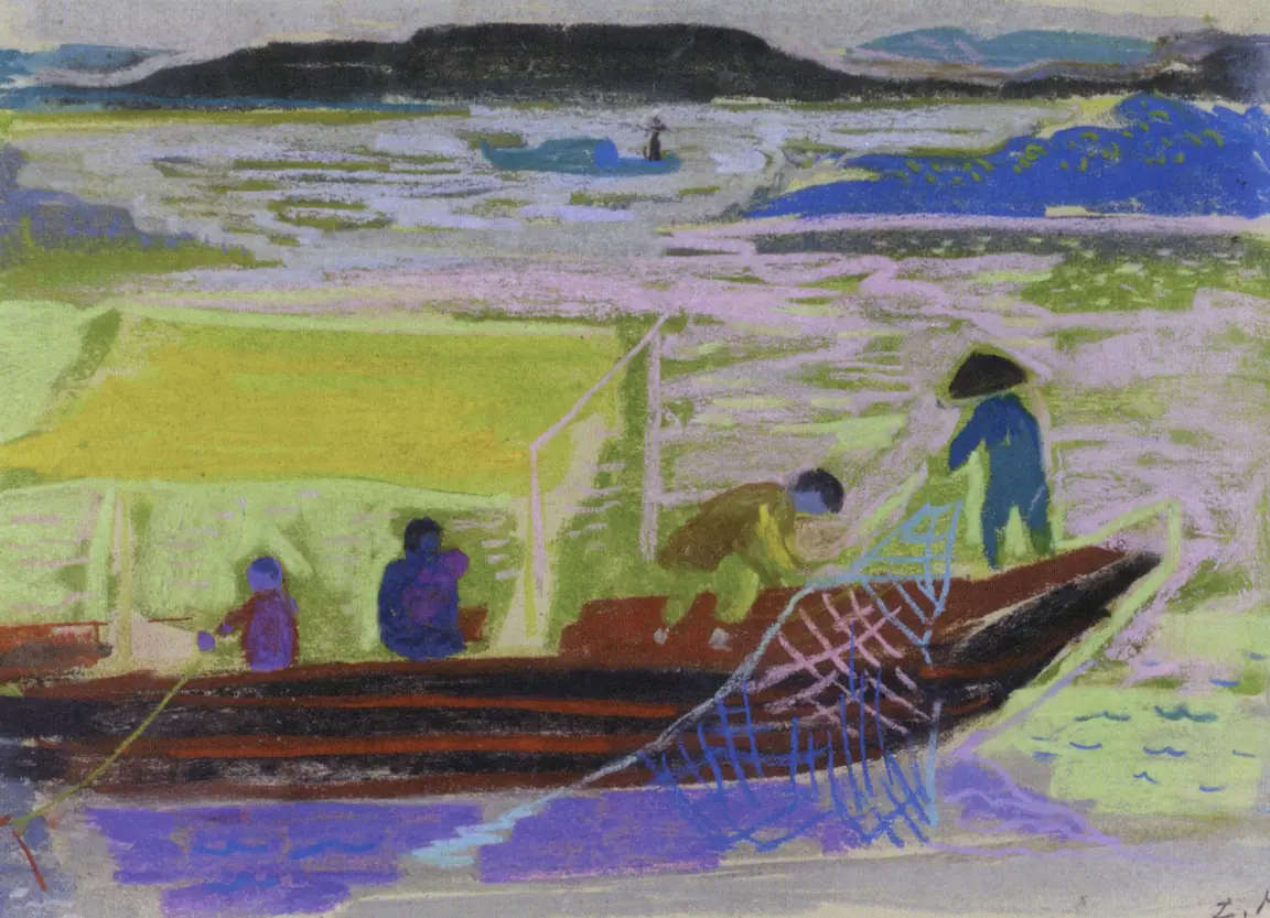 Ψαράς με την οικογένειά του, περ. 1957-62, παστέλ σε χαρτί, 26 x 36,5 εκ., ιδιωτική συλλογήΨάρεμα στον Γιανγκ Τσε