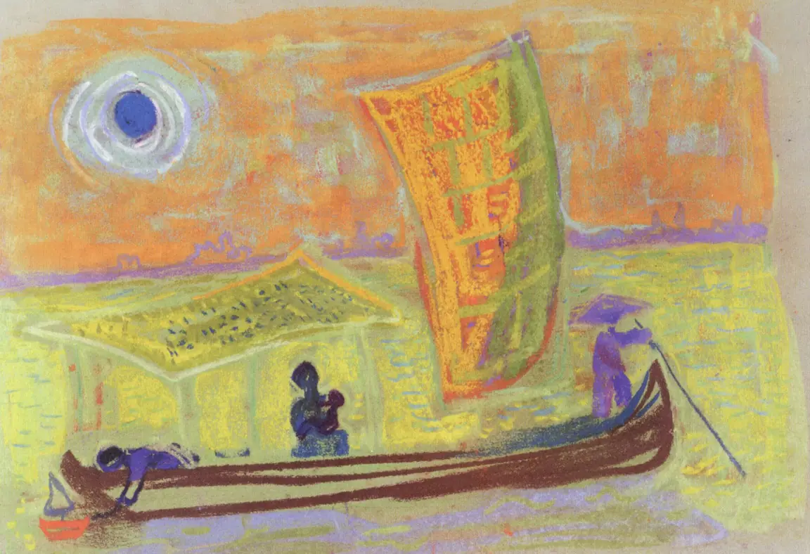Ψάρεμα στον Γιανγκ Τσε, περ. 1957-62, παστέλ σε χαρτί, 31 x 43 εκ., ιδιωτική συλλογήΜικρό ποταμόπλοιο Ι