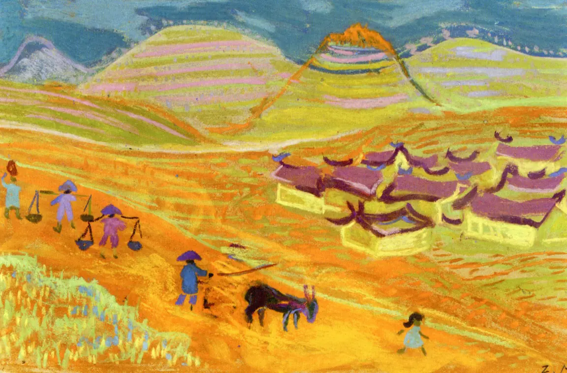 Δουλειά στον Κάμπο ΙΙ, περ. 1957-62, παστέλ σε χαρτί, 26 x 38 εκ., ιδιωτική συλλογήΧωριό ΙΙΙ