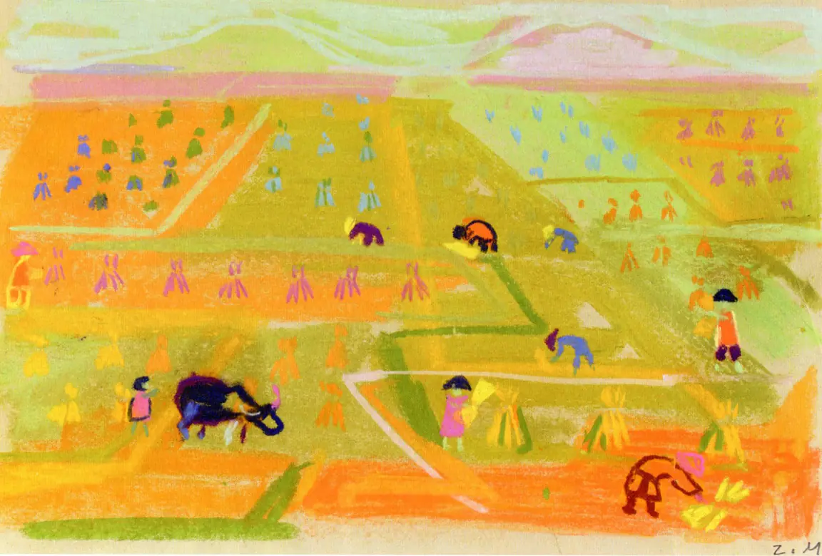 Ορυζώνας ΙΙ, περ. 1957-62, παστέλ σε χαρτί, 26 x 38 εκ., ιδιωτική συλλογήΔουλειά στον Κάμπο ΙΙ