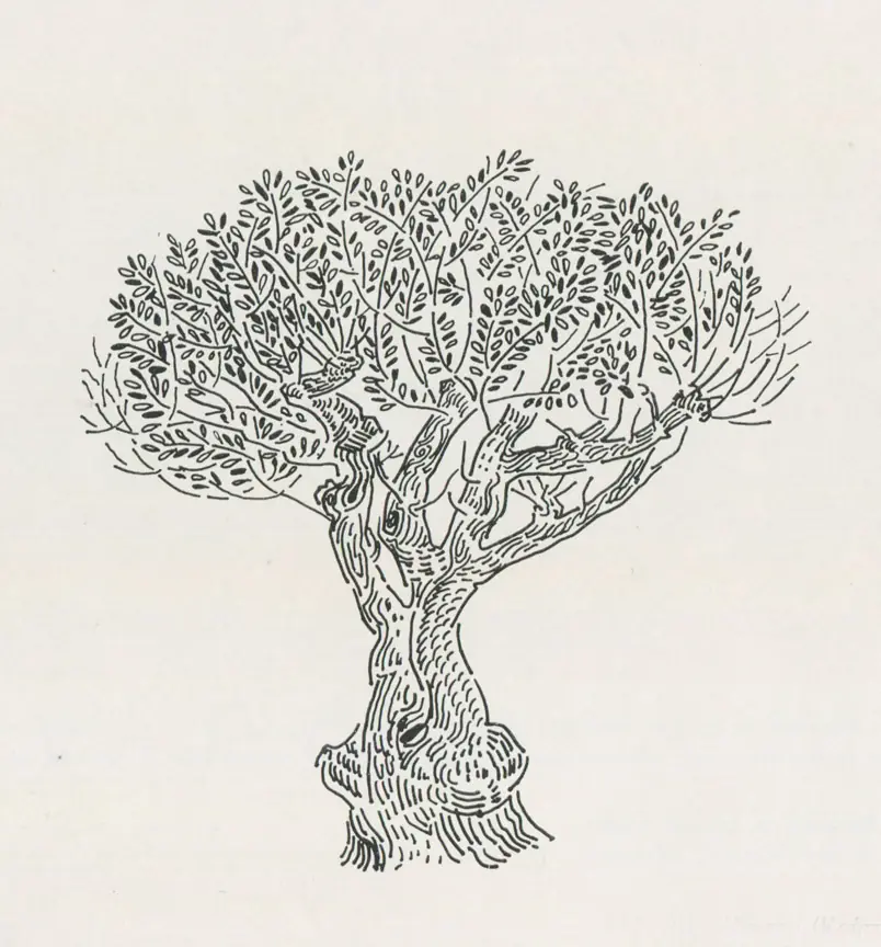 Ρόβινι, 1973, μελάνι σε χαρτί, 12,5 x 17,5 εκ., ιδιωτική συλλογήΕλαιόδεντρο (Κρήτη)